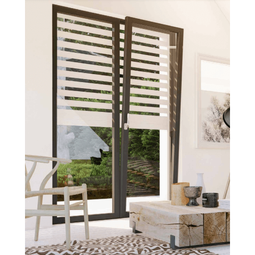 In modalità frangisole, puoi orientare le lamelle per far entrare luce naturale e aria, mantenendo la privacy e la sicurezza.